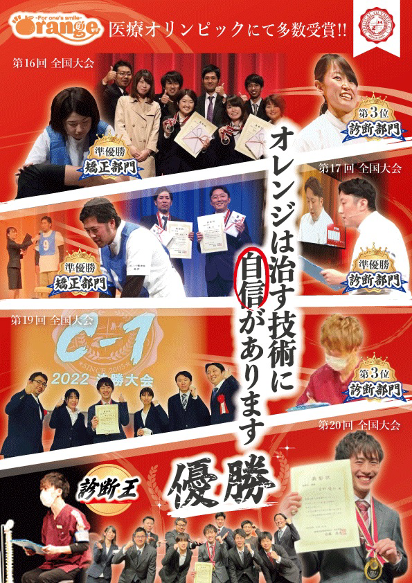 全国10地区、1,000人以上の国家資格者が技術を競う医療オリンピックC-1にて、3大会で全国2位以上になりました。(2023年度 診断部門1位、2019年度 診断部門、矯正部門2位、2018年度 矯正部門2位)
